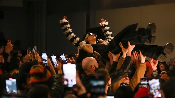 Sunnei’s show took audience participation to new heights, quite literally, with models crowd-surfing off the runway. This unexpected moment of trust and connection emphasized the communal aspect of fashion, breaking down barriers between the creators and the audience. It was a bold statement on the symbiotic relationship that can exist within the fashion ecosystem, where support and creativity intersect.